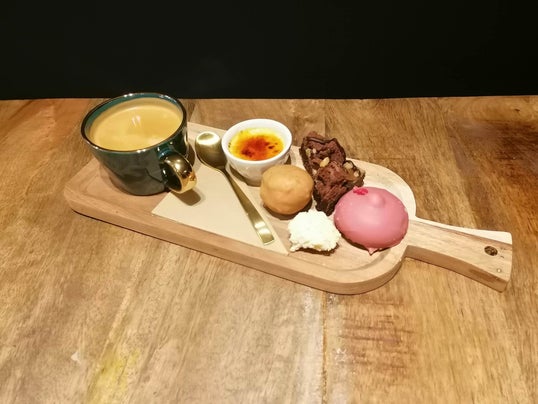 1 koffie, thee of chocolademelk vergezeld van enkele fijne en zoet versnapperingen. € 9,50pp